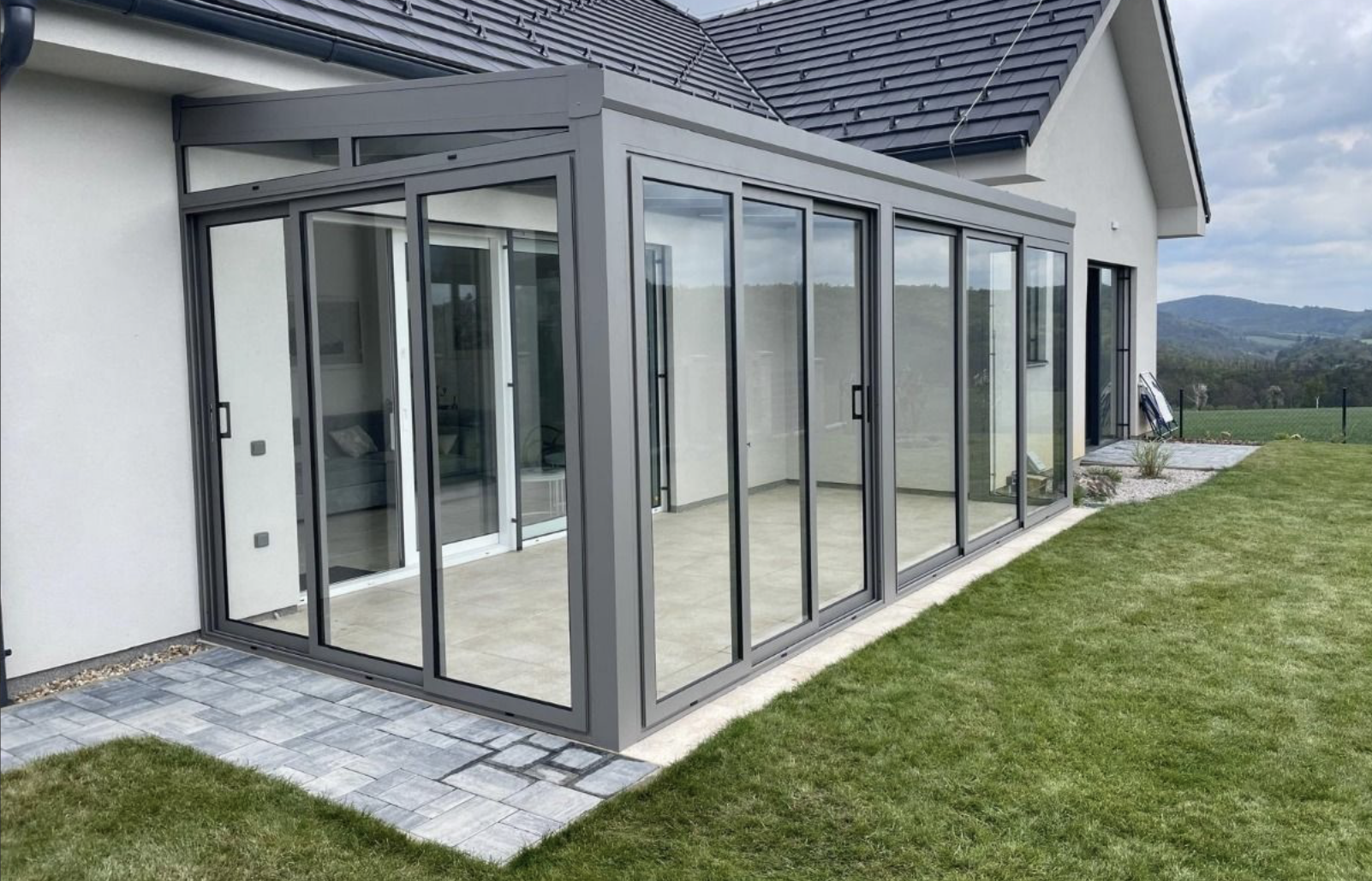 Vyrábíme sezónní zimní zahrady, které jsou vybaveny moderním zasklením s bezpečnostním sklem tloušťky 8 mm nebo izolačním dvojsklem. Zimní zahrada SkyGarden zajistí dokonalou tepelnou izolaci i ochranu před nepříznivými povětrnostními vlivy. Boční stěny jsou elegantně zaskleny, ať už pevným zasklením nebo praktickým posuvným rámem, aby vám umožnily uzavřít prostor celé zahrady.